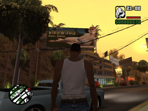 8.洛圣都的西区街道上面有一块苏茜(罪恶都市中的那个电影厂演员)为VINEWOOD代言的广告牌。