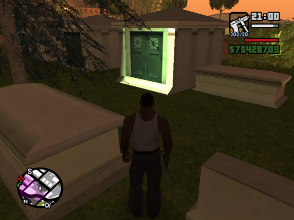 47.有一个小镇上面有一个奇怪的教堂,这个教堂有一个安了监控摄像头的忏悔室,还有一片荒废的墓园,而且这个墓园里面还有一个发紫光的墓碑,上面印刻着十字架,这个墓园影射R星埋葬的另一批反对党。(忏悔室的摄像头影射了暗中监视R星的那些人)