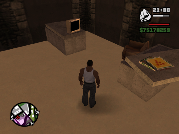 15.在洛圣都的西区墓园的一个房间里面有一台电视机、沙发和披萨盒,这些东西的布局很像《吸血鬼杀手》里面的摆设样式。
