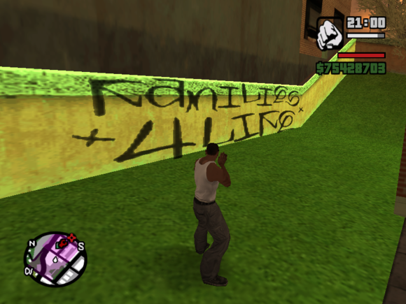 23.巴拉斯和葛洛夫家族分别隐射了当时美国西海岸的两大帮派:Blood帮派和Crips帮派。