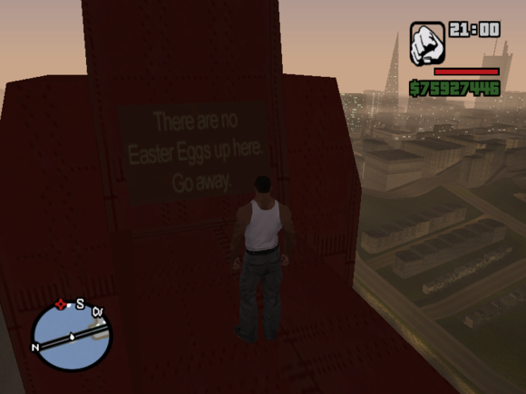 28.金门大桥(游戏中叫做冈特大桥)的桥梁上面有一个地方写着“这里没有什么彩蛋!回去吧!”(这不是此地无银三百两吗?)