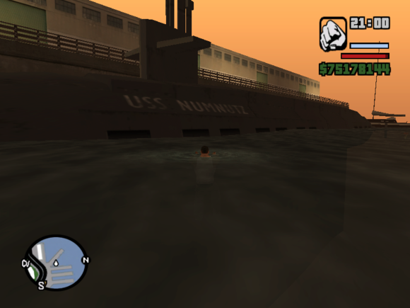 34.圣辉洛的码头那里停着一艘潜艇,上面还写着“USS Numnuts”,翻译过来就是麻痹的睾丸......这个彩蛋主要是反应其他城市海员们对同性恋聚集的旧金山的极大反感。(话说这个彩蛋同样很重口味)
