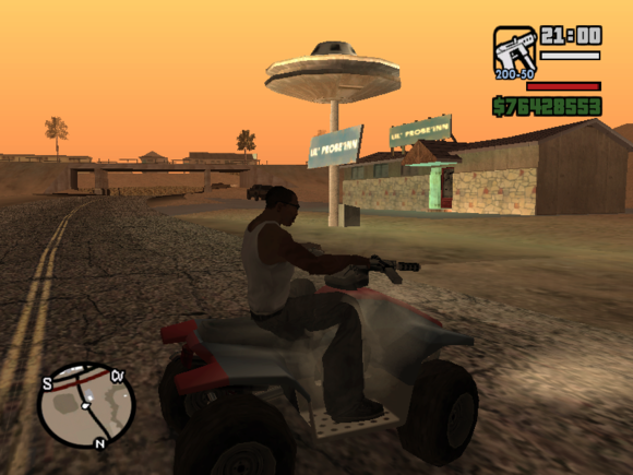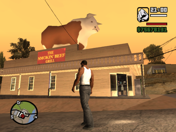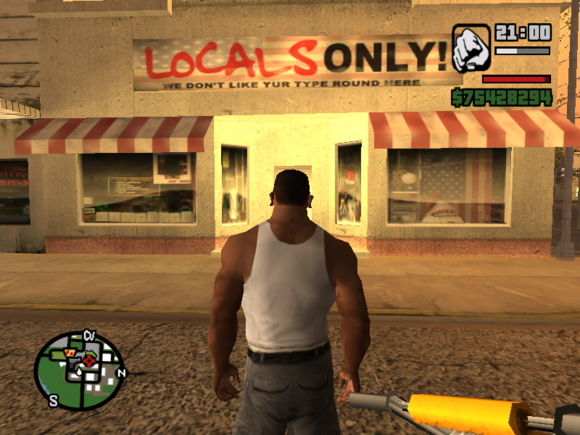 50.洛圣都附近的一个小镇上有一个“只允许本地人进入”的小商店,这个小商店的标语影射了《辛普森一家》中主角居住的那个不论在地图上怎么找也永远也找不到的小镇:春田镇。