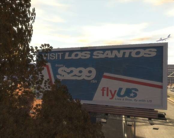 3.在机场附近有几个航空公司的广告牌,这些广告牌上面都是印着飞往前作地点(罪恶都市、洛圣都)的航空班次。
