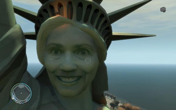 1.自由城的幸福女神的原型正是克林顿,有趣的是正是因为希拉里·克林顿总是和R星作对,阻止GTA4的商标注册,所以R星还在她的手上放了一个咖啡杯(影射SA的.......)