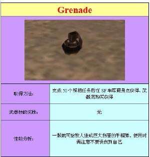 GTA3:攻击威力大,射程小,射速较慢。