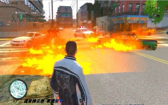 gta4:火焰更加真实,而且还有玻璃碎的声音,而且拿出来有拿火机燃烧瓶口布!前几作都直接从裤裆拿出来就不怕烧伤小丁丁!