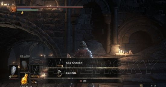 ②:在击败深邃教堂的BOSS拿到人偶,可以进入到冷冽谷的第二个篝火之后。保持引燃状态,回到之前通过的大桥入口处,会看到地上有个白色的召唤印,点确认之后会被召唤到她的世界之后帮她协力击败放浪骑士。击败之后传送回传火祭场,她会给你一个银猫戒指以及一把祝福变质的破甲剑。