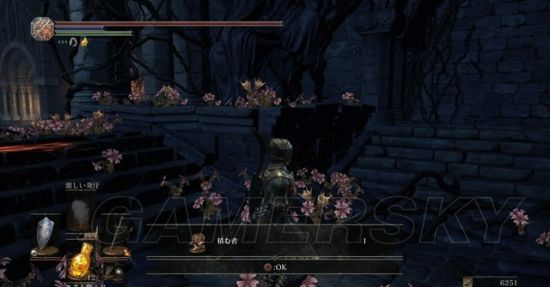 ④:然后回到传火祭场,和她对话选择第一项宽恕她,刷新地图之后。可以在第一次进入传火祭场右手边的悬崖的一块墓碑前捡到她的黄昏之盾(该地点特征为有一个杂兵在悬崖峭壁看绝景,在这个杂兵的旁边就是)。然后在击败双王子之后再回来,同样地方可以得到她的奇迹圣铃(此时她已经死亡),之后老婆婆的商店里可以买到她的整套服装。
