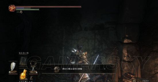 击败里面的一个黑暗骑士后可以拿到完整的红色眼眸(无限入侵道具),之后回到传火祭场和他对话可以得到肢体动作“赞赏”。