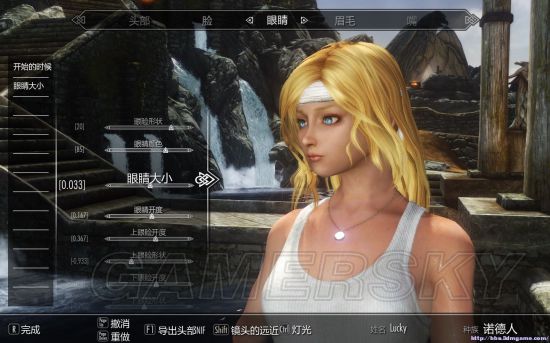 接下来上眼睑塑性,这是决定眼形的关键选项,这里我的眼睑开的太大了,不过没关系,一会还可以调。