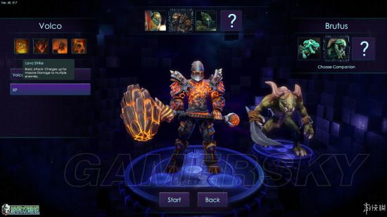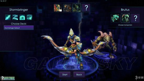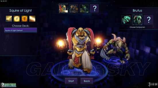 选择好挑战的关卡后就是英雄选择界面。游戏目前只开放了四名英雄供玩家选择。在这个界面,可以看到英雄的技能、目前配置的卡组与挑选随从。进行整备后,就可以开始游玩了。