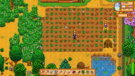 那么,夏天开始了,第一天直接去矿洞80层刷了一天野种。加上春天中后期送的还有博物馆长送的9甜瓜,1个星星,全在第二天种下。一共34块地,顺便周二那天运气是五角星,就去钓鱼了,还不错。宝箱没卖,准备放家里当摆设,还有些宝石和武器没卖,否则不算大宝箱大概能挣1万左右。