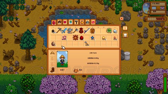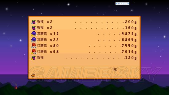 不过这里犯错了,黑莓是第一天和最后一天最多,中间两天其实可以钓鱼挣钱。不过无所谓了,老钓鱼也会烦,而且这几天既没有下雨,幸运最好一天也不过是普通,所以砍树采梅子就好,反正不买木头的话攒点木头永远有用的。不像纤维。我这里留了一组,其余全卖居然卖了3000多了,一般情况下你敢信。顺便周五我的二师兄终于贡献了第一个松露,感动呀。。而且那天完成了第一个金星献祭,顺便买的了夏天没有种出来的番茄。