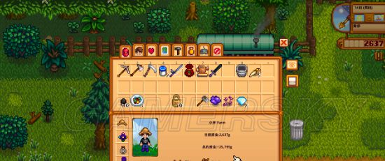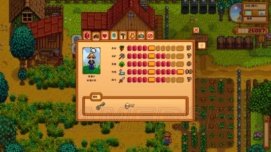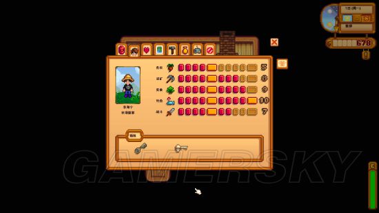 对了最后总结一下夏天过半,干了那些事,打通了矿坑,有了马。牛棚升级到2级。鸡窝一级,有了2鸡。2牛,2山羊。得到了下水道钥匙。钓到了夏日鱼王。最后贴下现在的技能总结。神tm采集,挖矿,和战斗都不低,务农最无奈。