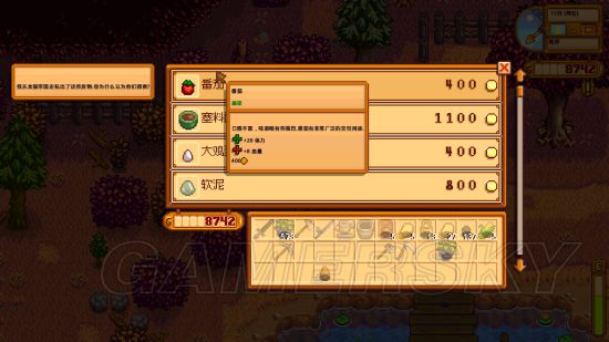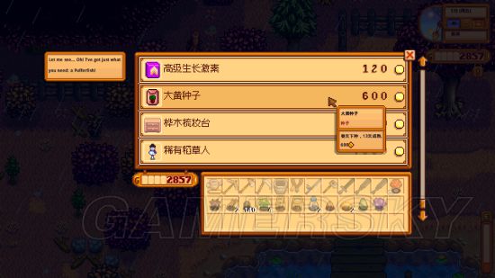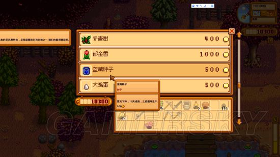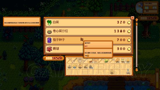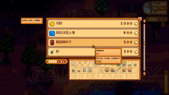 浇完水出门找黑商。结果只买了一个最甜果实的种子,发现蔓越莓的种子了,1200,初期太贵,没舍得买。