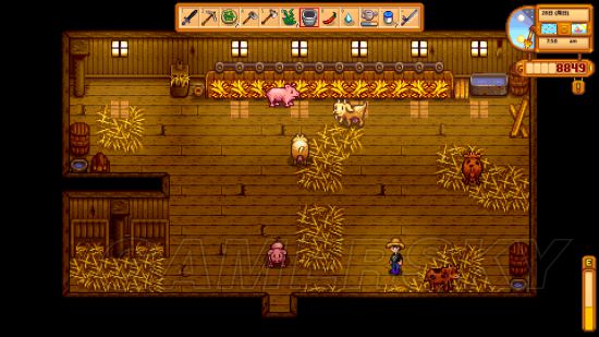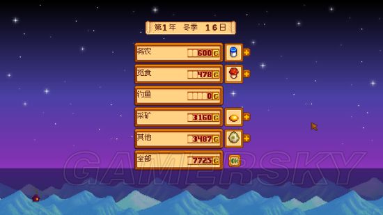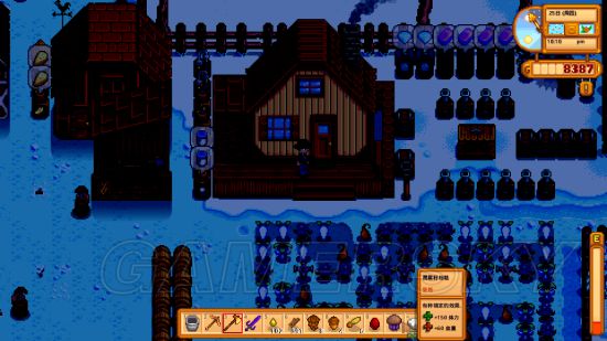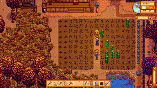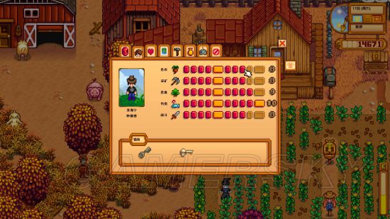 最后总结一下,秋天头两周完成了牛棚和鸡窝最大话。除了山羊没买,其他的动物都有了两只。恐龙有了一只。虚空鸡没有。。。最重要的是农业升级到了7级,剩下两周,最甜果实还有20个,和不少的玉米。升级到8级问题不大,希望能在第二年夏天前升级到9级。顺便黑商给我蔓越莓,草莓。蓝梅种子或者实物就更好了。。秋天还剩下的计划就是开通巴士和去沙漠矿洞看看,顺便把沙漠的两条鱼和矿坑+下水道的鱼钓了,顺便吃两个星星果加点体力,钱富裕可以考虑小黑那个,不过估计悬,升级一级房子比较有用。。。