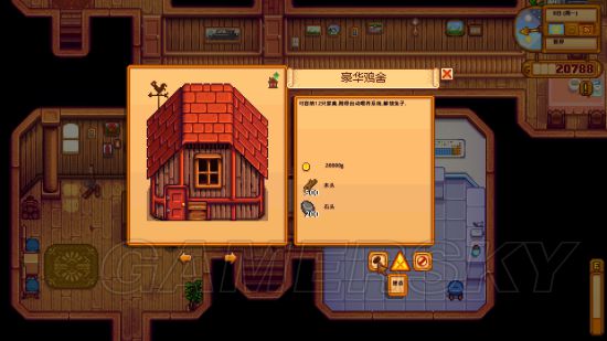 经过一周的钓鱼,第二周第一天我终于有钱把我的鸡窝升级到顶了。这下我这个月的任务一下完成一半,剩下的就是攒钱买兔子和解锁巴士了。