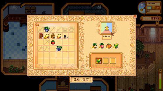 周六开始终于完成了秋天的献祭和养殖的献祭。南瓜也有5个金星了。就差防风草或者甜瓜再来5个金星就够了。春天差一个豌豆,买到种子了,夏天差一个蓝梅也买到种子了,看来温室第二年夏天就可以解锁了,运气不错,不过甘蓝菜和向日葵还是没有,哎。。。