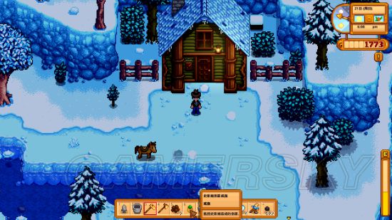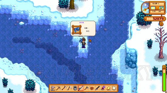第一周第一天。收拾了一下东西,直接去钓鱼了。2杆钓到冬季鱼王,这个档钓鱼还算给力,除了冬季所有鱼王都是一杆上钩,熔岩鳗和鱿鱼也是一杆。倒是乌贼用了3杆。。。到了晚上发现就差两样钓鱼就齐了。没说的,把封印已久的蟹笼仍农场的池塘里就等着了。