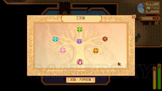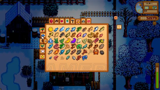 然后周六凑齐了全钓鱼,第二天肯定能收到星星果了,这么看来除了博物馆的那个,其它的我已经收集齐了。还有就是解锁了工艺室