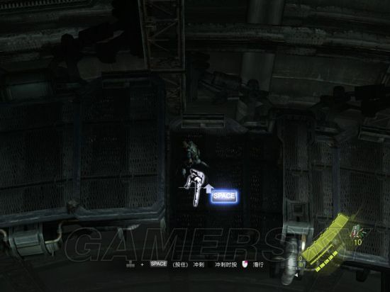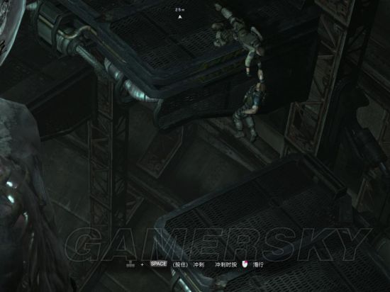 差不多跑了6秒后视角又会发生改变,按键就改为W(上)加冲刺键(空格),前方会有一段路需要滑铲,算好路程后一下划过去(当然只要前面跑得比较快的话爬过去都不成问题,lz就这样干的)