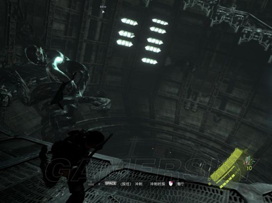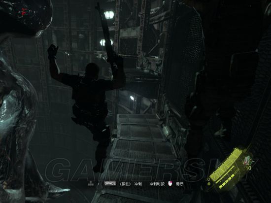 首先,那段CG动画完了后直接按住空格加左键,不一定非要赶上小皮,电脑的技术你永远无法赶超(lz就慢了半拍),顺便在爬梯子的过程中选一把你觉得顺手的武器,因为待会儿会颜射BOSS(lz就用喷子)