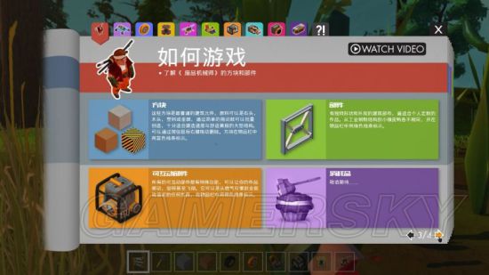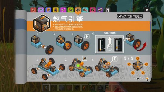你会留意到这些道具下方会有带有颜色的横条,不同颜色表示它们属于不同品种,譬如石块、木块的蓝色横条就属于建筑材料;轴承、引擎的橙色横条就表示电子零部件;木桌、栅栏的绿色横条就表示装饰品。