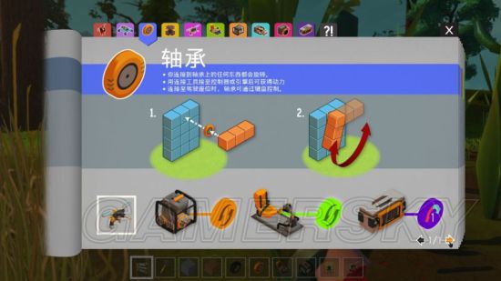 但它们并不能自主转动,因此你需要用连接工具将轴承依附的装置、道具连接到控制器或引擎,那么它们才会获得动力。