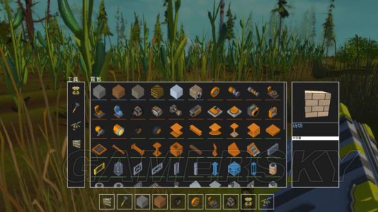 背包:在工具栏的右侧,这里存放着所有道具,透过这些道具你可以建造出无限的可能性。