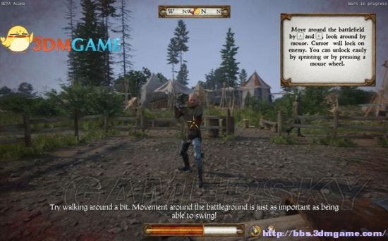 训练开始,第一节学习如何移动。用A或D键围着教官周旋。