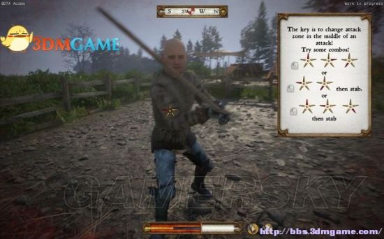 第三节学习格挡,长按Q键保持防御姿势,然后划动鼠标来改变格挡的方向。