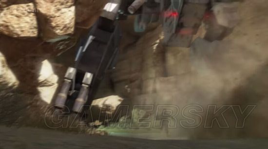 这台机体在追逐的过程中被地形的岩石卡住,无法前进。