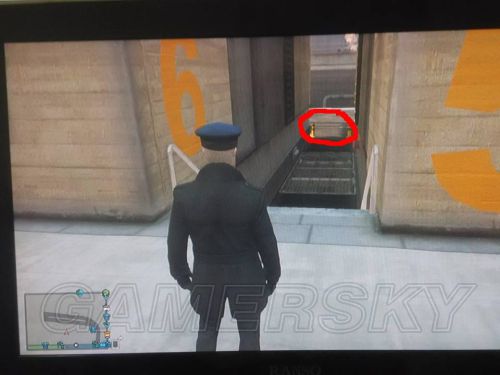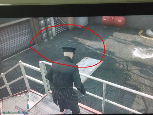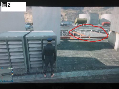 左转再深入后 会有一个蓝色电箱(图1) 上面有只佣兵 爬上去之后(图2)再他不注意时将他杀死