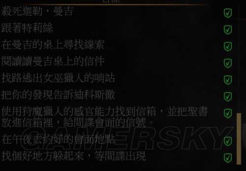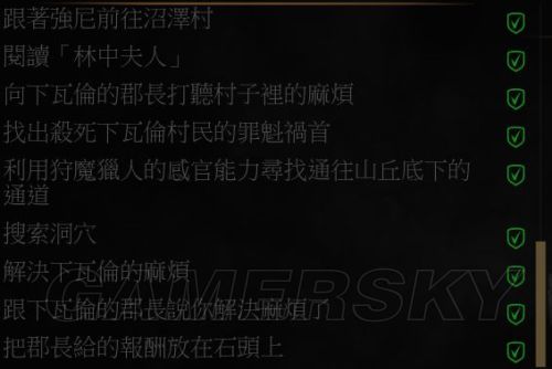 这边是触发遇到女巫凯拉的剧情,后续他有邀请帮忙的任务(伸手不见五指),会遇到强大的山洞与狂猎,接完猎捕女巫就先搁置