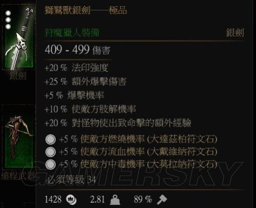 三洞建议中毒流血燃烧各一颗:15%机率随机发动一项DOT,各DOT间又不重复,建议不要三洞塞单颗,这游戏DOT很容易发动,银剑比照办理