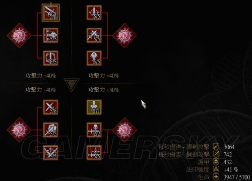 技能树很普通又不有趣,这边随便点点就好,但是配合诱发物整个攻击力高到不行!!我只用红色