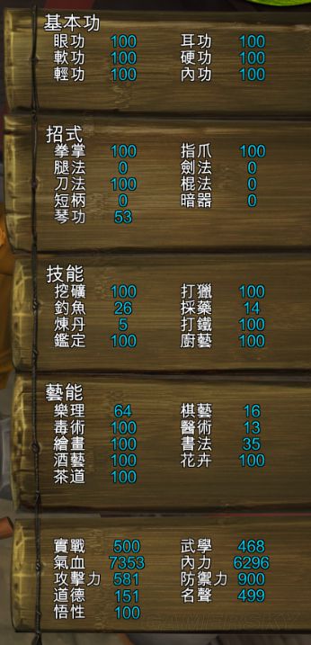 九月中旬 气血+100 内力+100 逍遥心法*2
