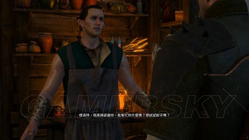 在初次见面还友善的招待杰洛特-加龙省饺子吃,不过其实杰洛特-加龙省早就知道哈托利还有另外一个身分就是铸剑师,不过可惜哈托利跟杰洛特-加龙省说他因为某些原因已经退休,不再铸剑了