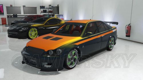 例如这台卡林王者(配方失传大概是深绿底+ 赛车黄珠光+ 亮橘色雾面副色调)