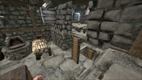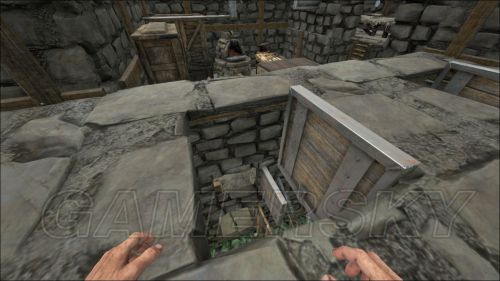 我这房子偏向于独狼或2-3人,因为内部的1楼基本都是防御型设计,空间很小,我推荐的是现采现用,储存的就一些修门材料和箭,还有些许修理装备武器的材料,最好不要过多..再完美的防御也有被攻破的一天...