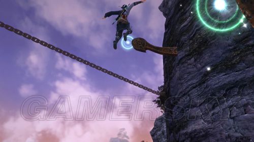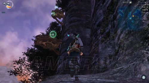 10、紧接着是三个飞行点,到达最上面的飞跃点后,跳上一侧的山崖小路,往右侧走。