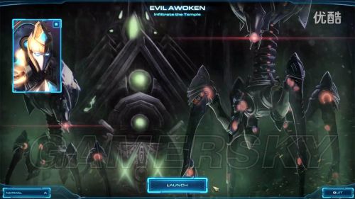 转入任务画面,画面里是一座神秘的萨尔那加神庙和效忠神秘萨尔那加人埃蒙的星灵异教徒——塔达林部队