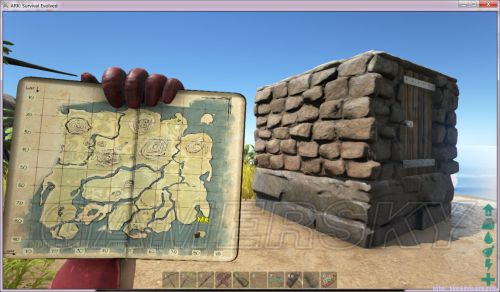 地图右下角的小岛,有矿,有甲龙,有三角龙,有乌龟,海边有鲨鱼,而且离91.71的矿洞很近,可以作为以后的一个跳板,很理想的地方。