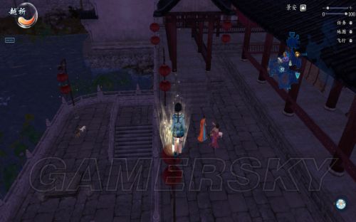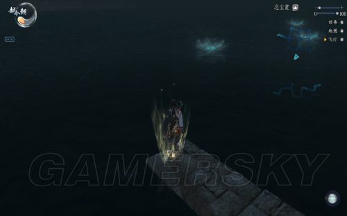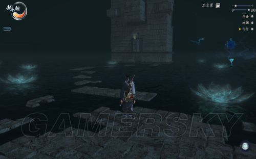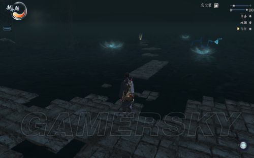 忘尘寰三是从岸上跳到最后一块后人往水中走点然后跳 不然是过不去的