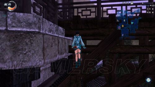 但是围着这个六角塔转了一圈,也没发现可以往上跳的地方,这个时候木墙绗架处突出的横梁引起了我的注意