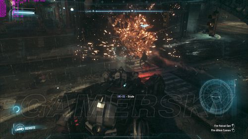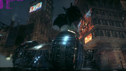 本作最大的卖点,就是那台酷到一个极致的蝙蝠车了,蝙蝠车有两种模式,一种是拥有超高速度并且可以冲破各种障碍的跑车模式,以及极具攻击性的战斗模式。战斗模式的蝙蝠车,拥有机枪、60mm炮以及导弹,大家都知道我们的阿蝠是不是会杀人的,可是这台蝙蝠车可以说是终极的杀人兵器,虽然这样子的设计让游戏的可玩性大大提升,但物极必反,在主线的很多时候,游戏都逼迫玩家们必须使用蝙蝠车才能够继续进行游戏,这也成了游戏中的败笔。