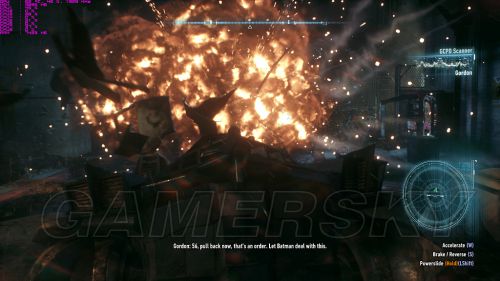 游戏采用的是虚幻3改良版引擎打造,在暴风雨中可以说是非常的拟真,光影表现上更是比强作漂亮不少,而最吃硬件的NVIDIA GameWorks效果,如果你可以开启的话,你会发现蝙蝠侠的披风会随风飘逸,各种环境的爆炸、粒子、烟尘效果,可是目前大作中的佼佼者。