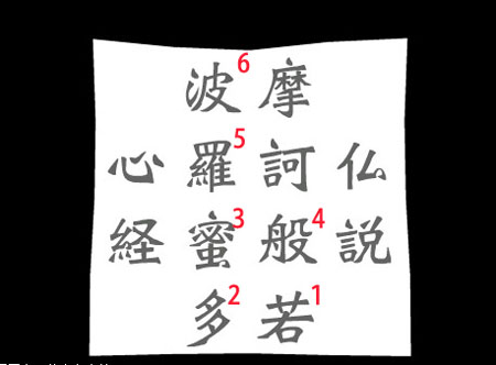注:有头发的那张纸要多烧几次,才能烧出跟箴言纸一样大小的图案来,脑海中把箴言纸和烧过的纸整齐地叠在一起,就可以看见把字放进绿十字的顺序啦!
