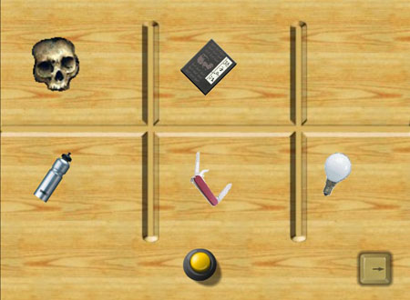 那可以推断出左上应该是骷髅(death's-head)左下是水瓶(water bottle)右下是灯泡(light bulb)还剩余三个位置,注意,右上没有密码所以不放东西。剩余的多试一下就知道了,中下是小刀、中上是孙子兵法。